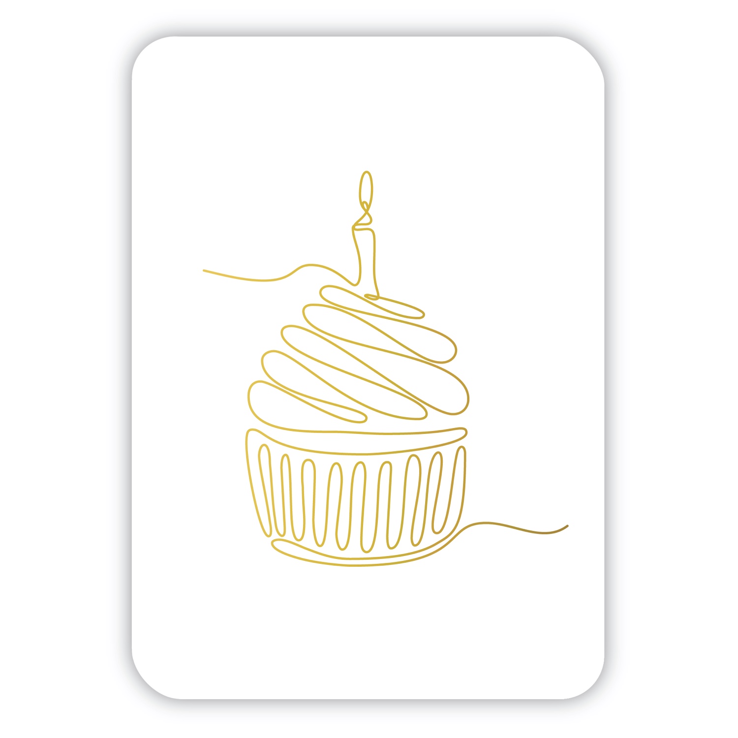 Vier een verjaardag of ander feestelijk moment met deze stijlvolle wenskaart. Het strakke witte design is versierd met een sierlijke goudfolie-illustratie van een cupcake, getekend uit één doorlopende lijn. Dit minimalistische en tegelijkertijd feestelijke ontwerp maakt de kaart een unieke keuze voor elke gelegenheid.